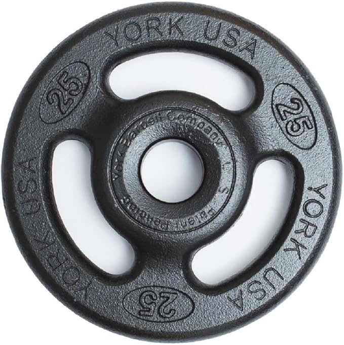 • Feature & Specification: Our York Barbell 2" ISO-Grip Steel Olympic Plate (25 lb) is engineered for peak performance. Featuring a 360-degree easy-pickup design with a thicker hub than rim, these 11½” diameter, 2” thick plates ensure a secure, smooth lifting experience.